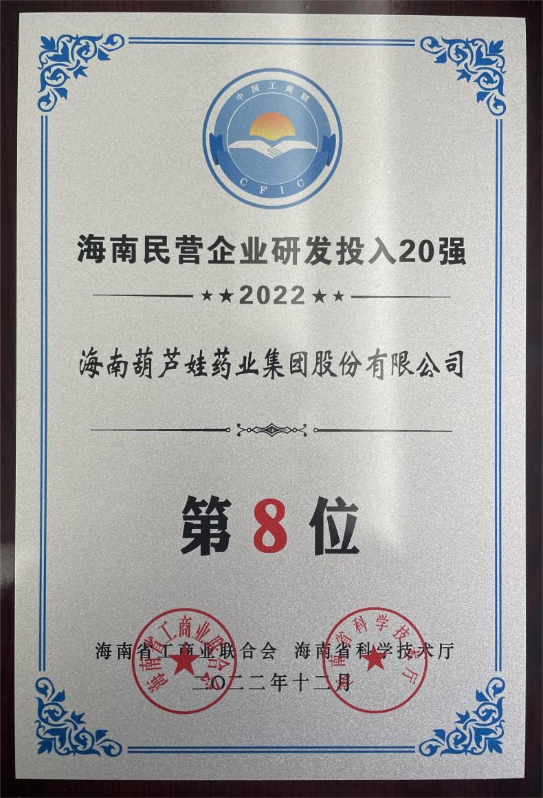 12月23日,2022海南民营企业50强和研发投入20强发布会在海口举行。会上发布了“2022海南民营企业50强”“2022海南民营企业研发投入20强”榜单和分析报告。东升国际药业再次荣登两榜,在海南民营企业50强榜单中位列第25位,较去年上升8位,这也是公司连续三年登榜;在海南民营企业研发投入20强中位列第8位,较去年上升7位。